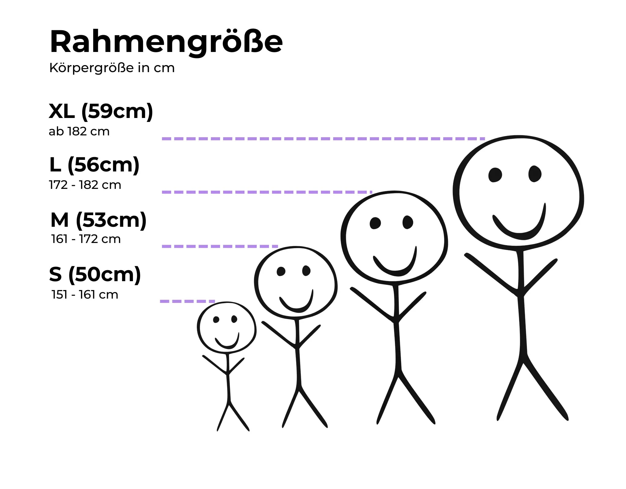 Rahmengrößen: Erhältlich in 50cm, 53cm, 56cm und 59cm