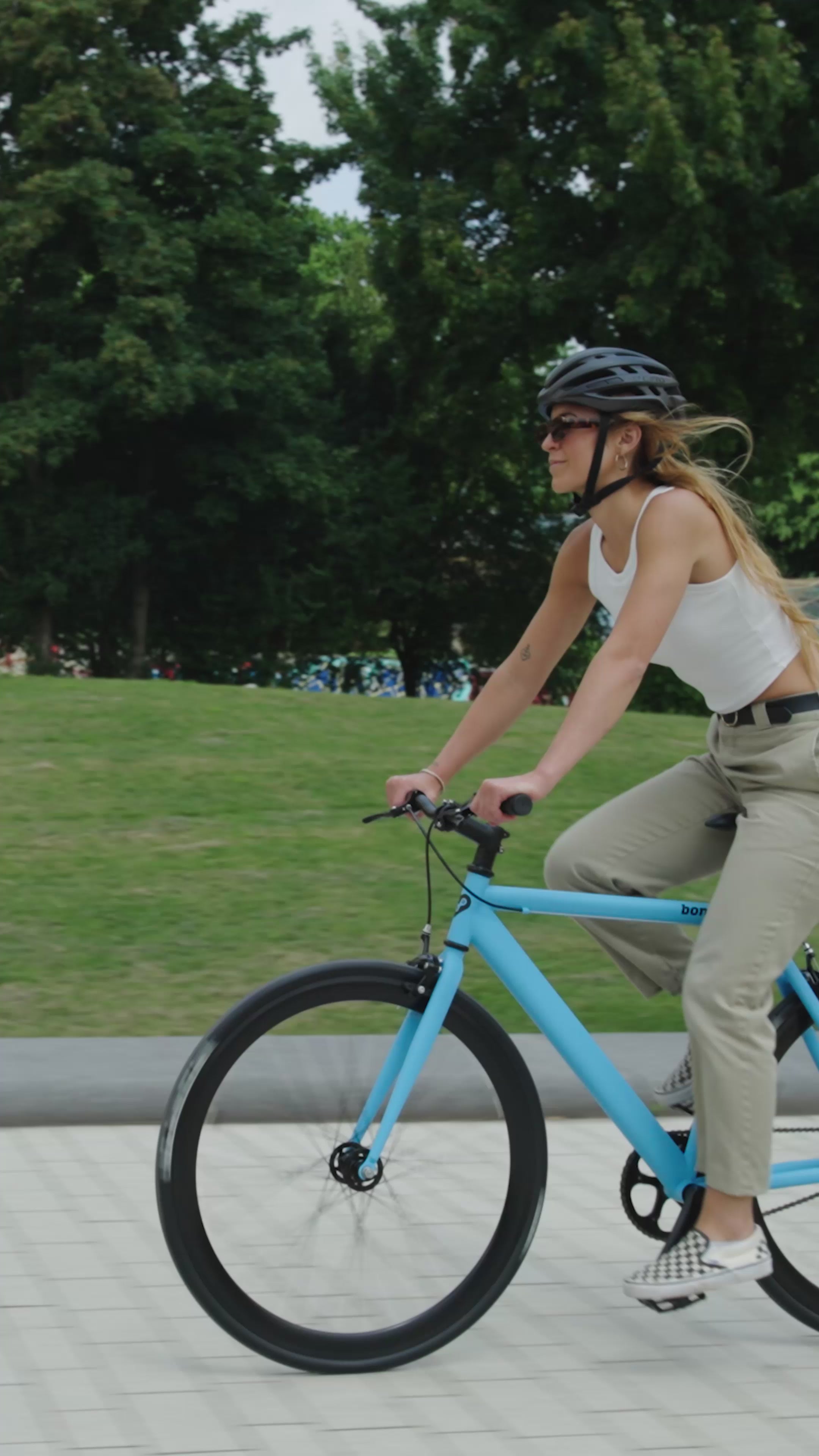 Unser Rahmen mit aerodynamischem Profil wurde von unserem Team entworfen und wird exklusiv für uns gefertigt. Sein Profil und die Geometrie sorgen für ein wendiges und stabiles Fahrgefühl in der Stadt.
